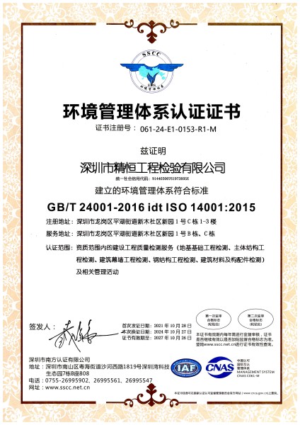 环境管理体系认证证书